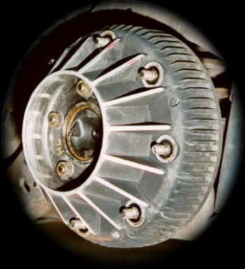 HintergrundPontiac verwendete diese speziellen Felgen von 1960 - 1968 in diversen Ausführungen, welche sich aber nur minimal unterscheiden. Das Spezielle an diesen Felgen ist, dass sie integrierte Bremstrommeln haben. Die Felge besteht aus zwei Teilen. Der innere Teil ist aus Aluminium gefertigt um das Bremsverhalten, beziehungsweise das Wärmeverhalten, zu verbessern. Der Reifen wird auf einen Stahlring aufgezogen der dann an dem inneren Aluminiumteil mit acht Schrauben befestigt wird. Daher auch der Name 8 - Lug Wheel.